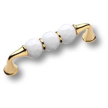 Ручка скоба 2537-030-96-WHITE, материал Замак Стекло, отделка Золото Стекло, 34*21*112 мм